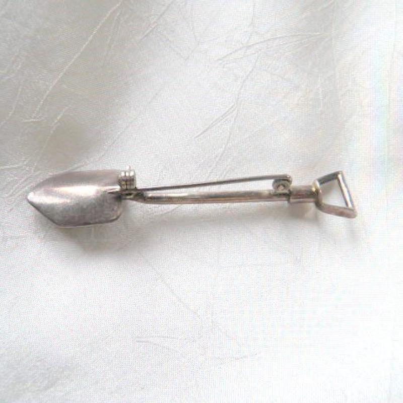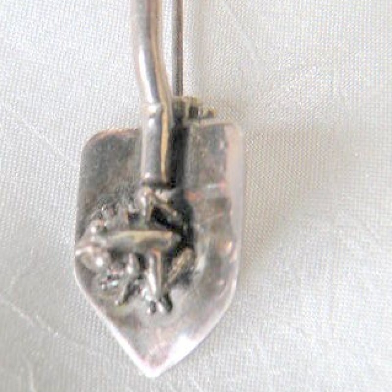 Description: Sweet shovel with a toad/frog on it. This shovel is 2-5/8" long. It is marked 925 and Mexico on its handle.