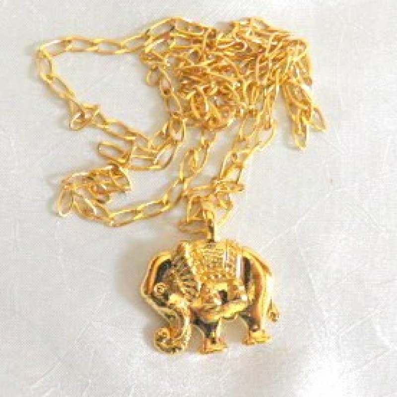 Description: Sweet little golden elephant hangs from a 26" chain. The elephant is 1" x 1". This piece was made by Avon and is in very good condition.