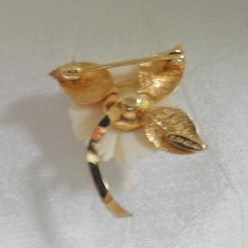 Description: Classic ivory colored rose pin marked 12/20 G.F. It is 1-1/8" x 1-1/8" and in very good condition. Other than the gold filled marking there is no makers name.