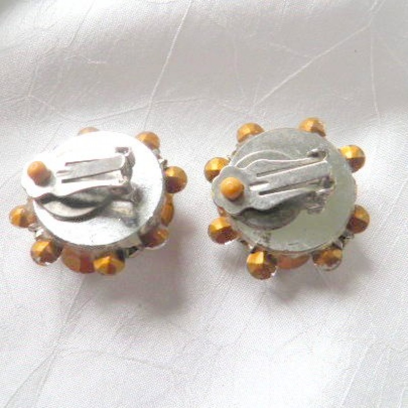 Description: Fantastic quality vintage rhinestone earrings. These sparkling beauties are 1-1/4" in diameter and have clip backs. The stones have foil backs. They are unsigned and in very good condition.